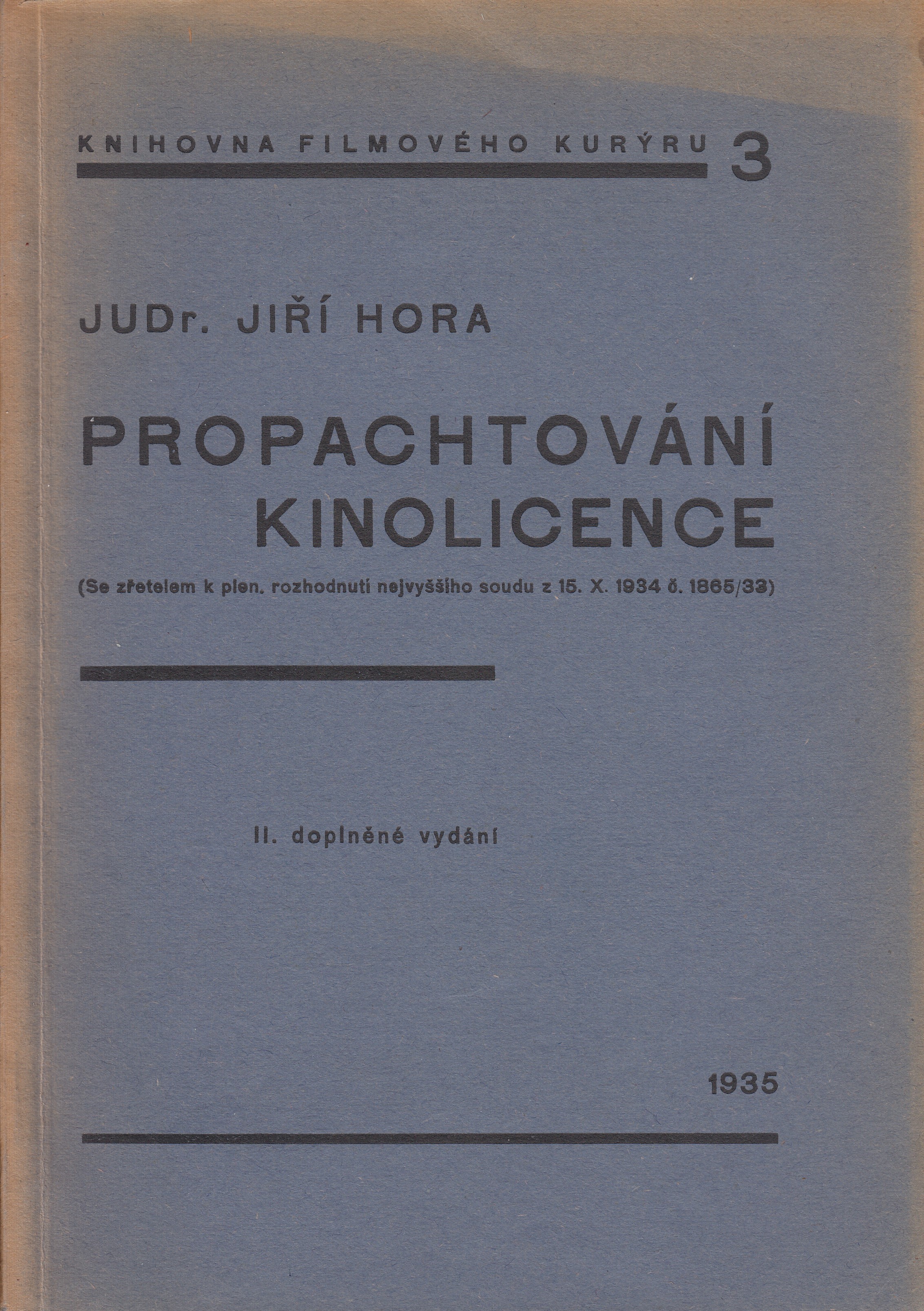 Název Propachtování kinolicence Podnázev právní význam zákazu neplatnosti smluv o propachtování kinematografických licencí (se zřetelem k plen. rozhodnutí nejvyššího soudu z 15. X. 1934 č. 1865/33) Aut.údaje Jiří Hora Autor Hora Jiří (1902-) Vydání 2. dopl. vyd. Vyd.údaje [Praha] : Čefis, 1935 Fyzický popis - 52 s. Edice Knihovna Filmového kurýru sv. 3 rediguje Jiří Havelka Jiná související díla Nařízení min. vnitra o kinematografii : překlad dekretu dvorské kanceláře ze 6. ledna 1836 č. 5 sb. z. pol. a nařízení min. vnitra č. 191 ř. z. z r. 1912 o kinematografii Poznámky 1. vyd. vyšlo v 15. čísle odb. časopisu Právník z 1. září 1931 pod titulem "Propachtování kinematografické licence", 2. vyd. je zvl. otiskem dopl. o nejnovější rozhodnutí nejvyššího soudu Anotace V první části pojednání autor komentuje historii kinematografické licence v Českých zemích a Československu od roku 1912, kdy došlo k její první právní úpravě. V druhém díle seznamuje s textem plenárního rozhodnutí nejvyššího soudu z 15. října 1934 a podrobuje jej rozboru. Předmět.hesla legislativa. Česko. Československo * kina. Česko. Československo * licenční právo. Česko. Československo Form.deskr. studie, dokumenty Systemat. (048.8), 791.622(437.3), 725.824.4(437.3), (094) Jazyk dok. cze - čeština Země vyd. CS - Československo Druh dok. I - Legislativní literatura Katal.org. ABC135 - Knihovna Národního filmového archivu ID NFA (NFA-K)b-00042626 Počet ex. 4, z toho volných 2, prezenčně 2 Databáze xxxk - Knihy Signatura Přír.číslo Lokace Dislokace CS Info 68-2 0000068 FOND HRAD pouze prezenčně 68-2-A 0001978 FOND HRAD pouze prezenčně 68-2-B 0008087 FOND HRAD 68-2-C 0036224 FOND HRAD