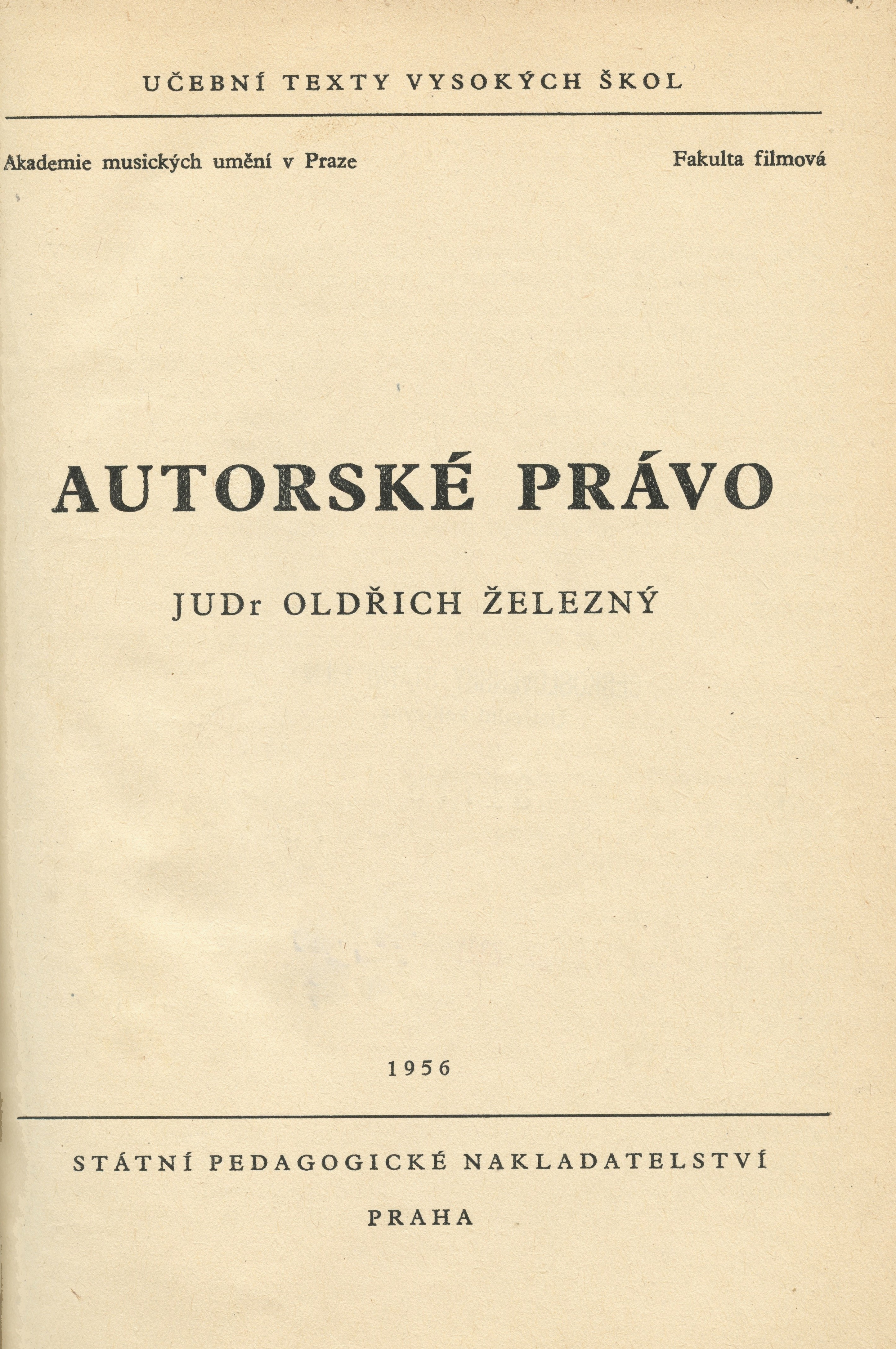 Název Autorské právo Aut.údaje Oldřich Železný Autor Železný Oldřich (1926-2006) Další autoři Akademie múzických umění v Praze. Filmová a televizní fakulta Vydání Vyd. 1. Vyd.údaje Praha : Státní pedagogické nakladatelství, n.p., 1956 Fyzický popis - 97 s. Edice Učební texty vysokých škol Anotace Učební text pro posluchače katedry produkce a katedry dramaturgie na FAMU. Vykládá autorský zákon, zabývá se mezinárodním autorským právema některými cizími autorskoprávními normami, rozebírá postavení filmového díla v autorském právu. Dále zahrnuje podrobnější rozbor ustanovení o ochranných autorských organizacích a o hudebních a artistických ústřednách a zabývá se také přilehlými předpisy, např. předpisy o smlouvě o dílo a daní z literární a umělecké činnosti. V příloze text autorského zákona č. 115/1953 Sb. a text kolektivní smlouvy Čs. státního filmu se Svazem čs. spisovatelů. ISBN (Váz. (dodatečně)) Předmět.hesla filmový průmysl. Československo * právo a film. Československo * legislativa. Československo * autorské právo. Československo * ochranné známky. Československo Form.deskr. studie, učební texty Systemat. 34:791(437), 347.78(437), 347.772(437), (07), 791.61(437), (048.8) Jazyk dok. cze - čeština Země vyd. CS - Československo Druh dok. ASK - Skripta Katal.org. ABC135 - Knihovna Národního filmového archivu ID NFA (NFA-K)b-00145397 Počet ex. 2, z toho volných 0, prezenčně 2 Databáze xxxk - Knihy Signatura Přír.číslo Lokace Dislokace CS Info 7296 0031776 FOND HRAD pouze prezenčně 7296-A 0031777 FOND HRAD pouze prezenčně
