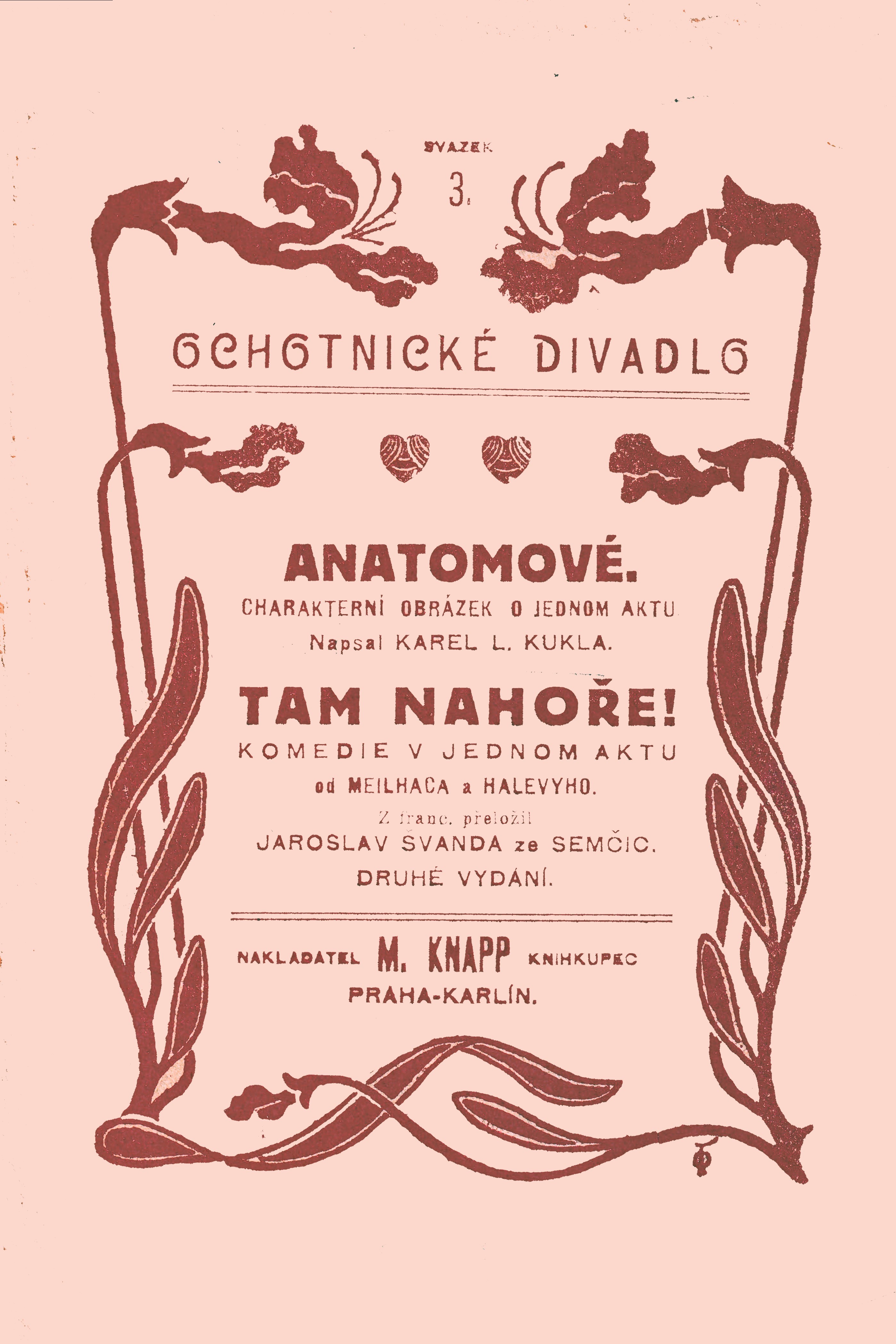 Název Anatomové Podnázev charakterní obrázek o jednom aktu Aut.údaje napsal Karel L. Kukla Autor Kukla Karel Ladislav (1863-1930) Další autoři Meilhac Henri (1831-1897) Halévy Jacques Fromental (1799-1862) Švanda ze Semčic Jaroslav (1851-1879) Vydání 2. vyd. Vyd.údaje V Praze : Nakladatel M. Knapp, [1884] Fyzický popis - 60 s. Edice Ochotnické divadlo sv. 3. pořádá Arnošt Schwab-Polabský Poznámky Údaj o vydání uveden na obálce Obsahuje Tam nahoře! : Komedie v jednom aktu / od Meilhaca a Halevyho ; z francouzského přeložil Jaroslav Švanda ze Semčic Anotace Třetí svazek edice Ochotnické divadlo obsahuje divadelní hru K. L. Kukly Anatomové a komedii Tam Nahoře! francouzského dramatika H. Meilhace a ISBN (Brož.) Form.deskr. divadelní hry Systemat. (0:82-2), 821.162.3-2, 821.133.1-2 Jazyk dok. cze - čeština Země vyd. CS - Československo Druh dok. ADH - Divadelní hry Katal.org. ABC135 - Knihovna Národního filmového archivu ID NFA (NFA-K)b-00162395 Počet ex. 1, z toho volných 0, prezenčně 1 Databáze xxxk - Knihy Signatura Přír.číslo Lokace Dislokace CS Info 12727 0111786 FOND HRAD pouze prezenčně