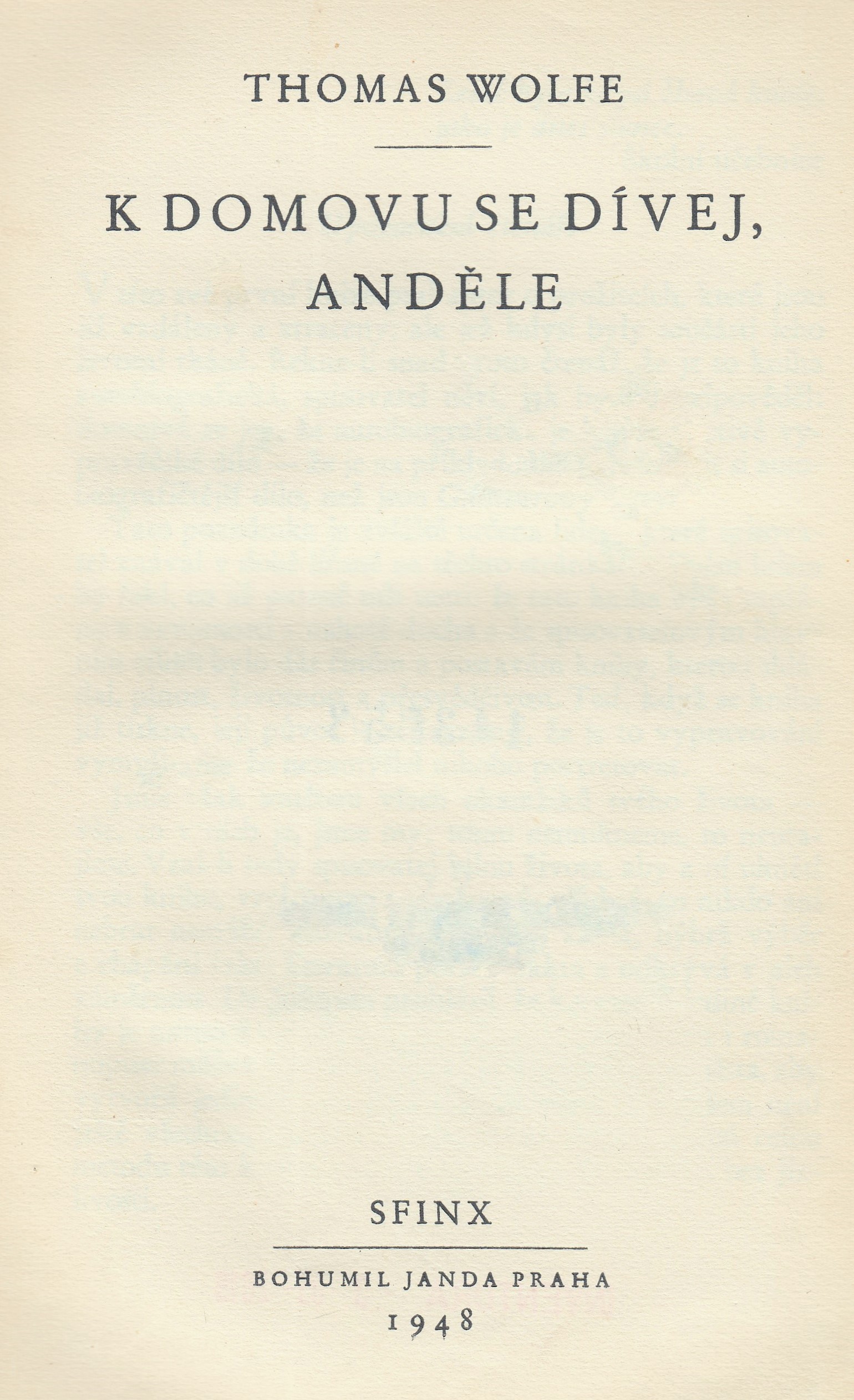 Název K domovu se dívej, anděle Podnázev [historie zasutého života] Aut.údaje Thomas Wolfe; [z americké předlohy ... přeložili Zdeněk Vančura a Vladimír Vendyš] Další variantní názvy K domovu pohleď anděle! Autor Wolfe Thomas (1900-1938) Další autoři Vančura Zdeněk (1903-1974) Vendyš Vladimír (1896-1961) Vydání 2. vyd. Vyd.údaje Praha : Sfinx, Bohumil Janda, 1948 Fyzický popis - 609 s. Edice Sůl země sv. 8Nové cíle sv. 1045 Originál Look homeward, Angel Anotace Druhé vydání autobiografického románu, jakési rodinné kroniky, ve které se Wolfe vrací ke vzpomínkám na svůj život v Asheville, včetně osudů obyvatel matčina penzionu na Spruce Street. V knize se městečko nazývá Altamont a penzion "Dixieland". Svou rodinu pojmenoval Gantovi, sebe Eugen, otce Oliver a matku Eliza. Román byl vydán jedenáct dní před krachem burzy v roce 1929 a způsobil ihned rozruch v autorově rodném městě, protože se jeho obyvatelé poznávali v postavách románu. "Look Homeward, Angel" se stal bestesellerem kromě USA také ve Velké Británii a Německu, byl zdramatizován a uveden i na televizní obrazovky. ISBN (Váz. (dodatečně)) Form.deskr. romány Systemat. (0:82-31), 821.111(73)-31 Jazyk dok. cze - čeština Jazyk orig. eng - angličtina Země vyd. CS - Československo Druh dok. ABE - Beletrie Katal.org. ABC135 - Knihovna Národního filmového archivu ID NFA (NFA-K)b-00177848 Počet ex. 1, z toho volných 0, prezenčně 1 Databáze xxxk - Knihy Signatura Přír.číslo Lokace Dislokace CS Info 4065 0113753 FOND HRAD pouze prezenčně