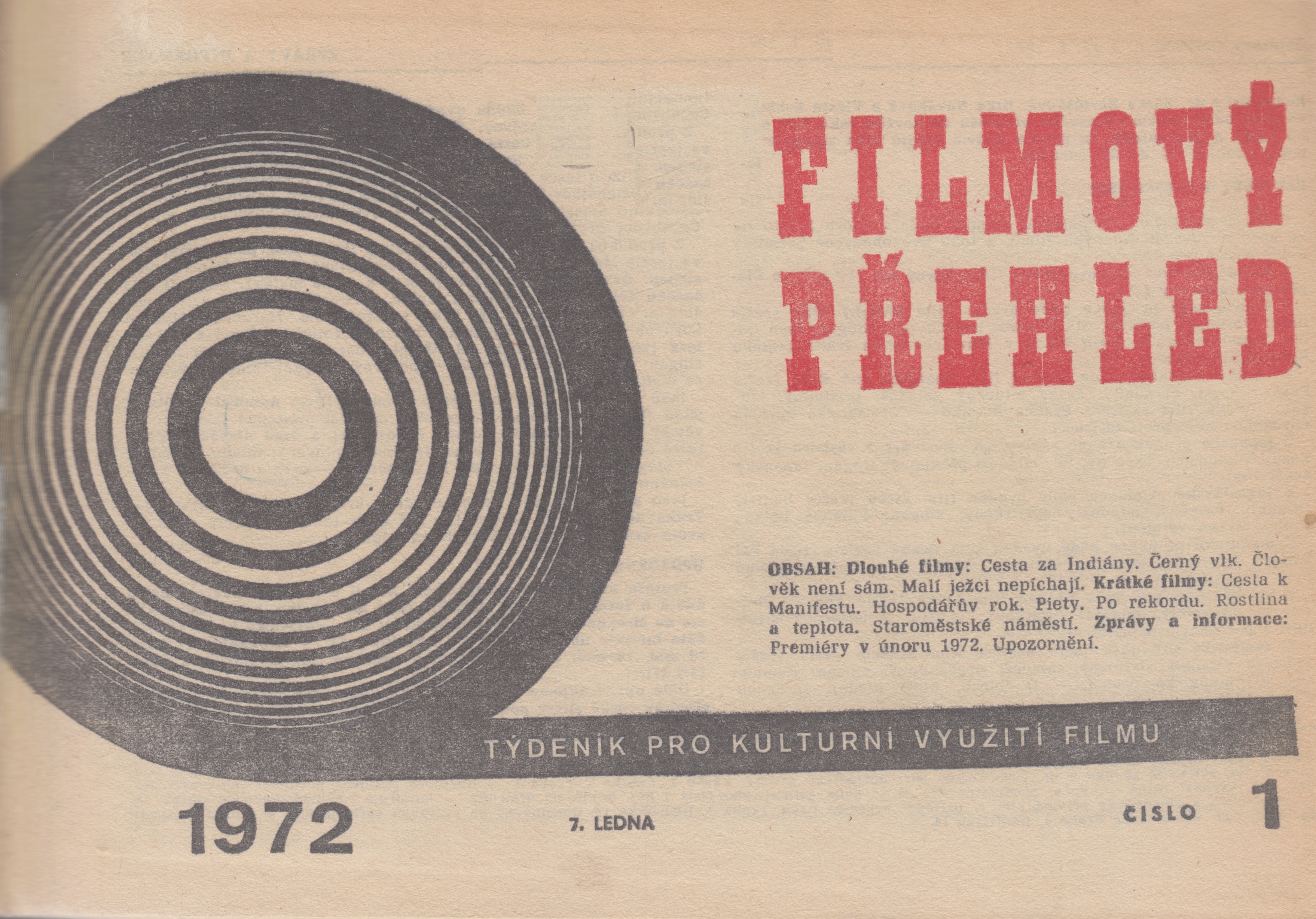 Title Filmový přehled Subtitle týdeník pro kulturní využití filmu Vol. and No. [Roč. 23], č. 1 (07.01.1972)-51/52 (29.12.1972), 1972 Issue data Praha : Český filmový ústav : Čs. filmový ústav : Orbis, 1972 Note Vydavatel č. 1-28: Český filmový ústav. - Vydavatel č. 29-52: Čs. filmový ústav. - Nakladatel č. 30-52: Orbis. - Doplňky k rejstříku 1971. - Rejstřík 1972. - Týdně ISSN 0015-1645 Form. Descr. periodika filmová UDC 791.63, (051) Language cze - Czech, slo - slovak Country CS - Czechoslovakia Doc. Kind BFI - Film periodicals Catal.org. ABC135 - Knihovna Národního filmového archivu NFA Control Number (NFA-K)b-00032767 Copy count 5, currently available 0, at library only 5 Database xzrp - PERIODIKA - Svázaný ročník periodika References - PERIODIKA - Souborný záznam periodika (47) - PERIODIKA - Přijatá čísla (583) - ARTICLES Call number Track No. Location Sublocation CS Info 6691/1972-A 0067086 PRIR CIT6 In-Library Use Only 6691/1972 0067085 FOND HRAD In-Library Use Only 6691/1972-B 0097409 FOND HRAD In-Library Use Only 6691/1972-C 0097410 FOND HRAD In-Library Use Only 6691/1972-D 0097411 FOND HRAD In-Library Use Only