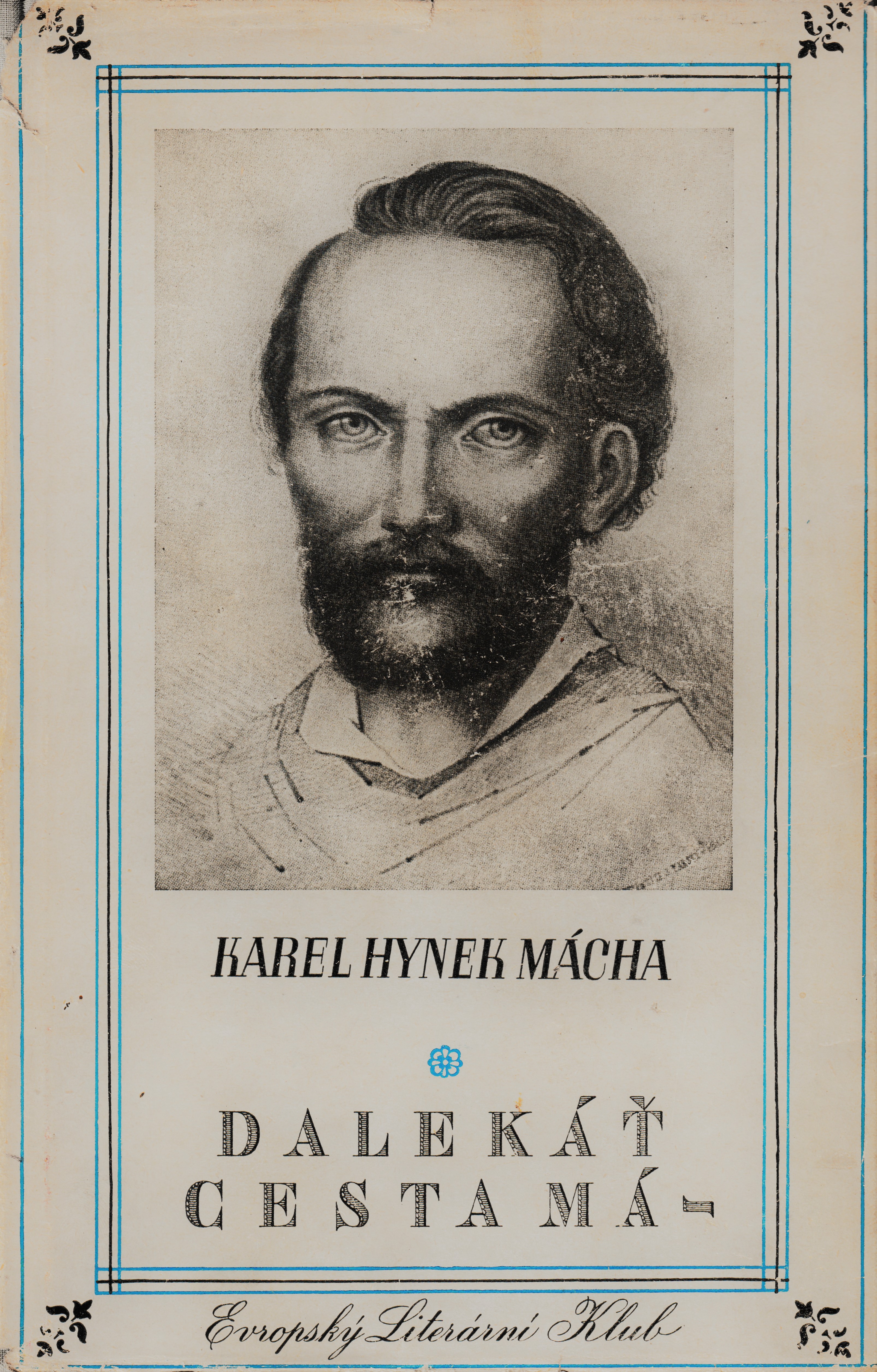 Title Dalekáť cesta má Subtitle [výbor z díla Karla Hynka Máchy] Author info Karel Hynek Mácha; [uspořádal Karel Janský, úvod napsal Vojtěch Jirát] Author Mácha Karel Hynek (1810-1836) Další autoři Janský Karel (1890-1959) Jirát Vojtěch (1902-1945) Issue data Praha : Evropský literární klub, 1941 Physical description - 262 s. Edition Národní klenotnice sv. 24 Note Úvod. - Poznámky vydavatele Contains also Máj -- Křivoklad -- Pouť krkonošská -- Obrazy ze života mého Annotation Výbor z díla českého básníka, největšího představitele českého romantismu, Karla Hynka Máchy (1810-1836). Zahrnuje jeho básně (zejména nejznámější lyricko-epické dílo Máj), písně, znělky, prózu a korespondenci. ISBN (Váz.) Film Máj 2008 Form. Descr. výbory, poezie, literární texty, korespondence, sborníky UDC (082.21), (0:82-9), (0:82-1), (044), (081), 821.162.3-1 Language cze - Czech Country CS - Czechoslovakia Doc. Kind ASB - Proceedings Catal.org. ABC135 - Knihovna Národního filmového archivu NFA Control Number (NFA-K)b-00113682 Copy count 1, currently available 0, at library only 1 Database xxxk - Books Call number Track No. Location Sublocation CS Info 11699 0016710 FOND HRAD In-Library Use Only