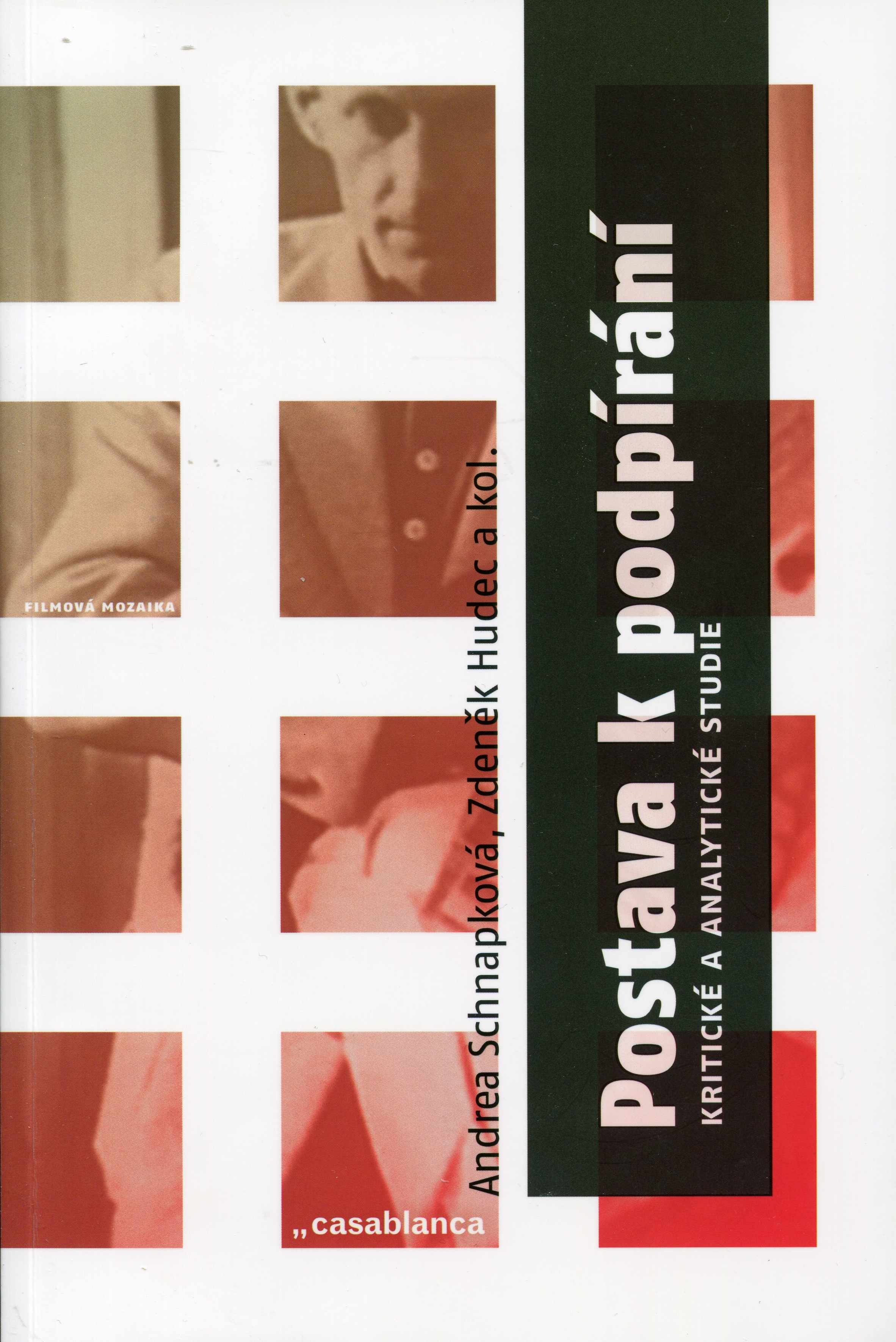- Postava k podpírání : kritické a analytické studie / Andrea Schnapková, Zdeněk Hudec a kolektiv. -- Vyd. 1. -- Praha : Casablanca, 2017. -- 134 s. : il., portréty, faksim. -- (Filmová mozaika ; sv. 4). -- Úvod, citáty, výňatky, poznámky v textu, seznam vyobrazení, anglické resumé, o autorech - Bibliografie na s. 124-127, rejstřík - Knižní soubor čtyř studií věnovaný jednomu z raných děl československé nové vlny – středometrážnímu snímku Pavla Juráčka a Jana Schmidta Postava k podpírání. Kniha je vlastně polemikou se zažitým pohledem na film jako na dílo inspirované poetikou tvorby Franze Kafky, a to ať už rozborem jeho osobních názorů vyjadřovaných v soukromí (deníky, zápisky) či veřejně (eseje, články), nebo sledováním vývoje předlohy snímku od literárních náčrtů po scénář, či analýzou dobového ideového diskurzu, tak i samotnými stylistickými prvky, jako je např. pojetí hlavní postavy v hereckém podání Karla Vašíčka. Autoři tak poskytují nové pohledy zejména na postavu Pavla Juráčka, na jeho tvůrčí záměry a ideové pozadí jeho světonázorového obzoru. -- ISBN 978-80-87292-38-9 (brož.)